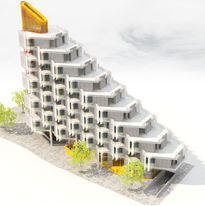 Competition project for a multi-use building. Located on the river's edge of Lepenica, in the the city of Kragujevac, this project reacts to the context of the nearby architecture. By mimicking the stepped nature of those buildings, the incomplete nature of block is resolved. The apartments and office spaces are multi-sided with each apartment having multiple terraces of various sizes.